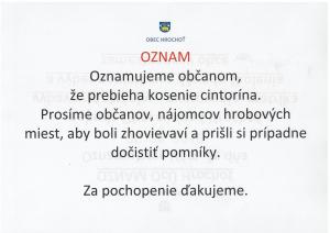 OZNAM - kosenie cintorína