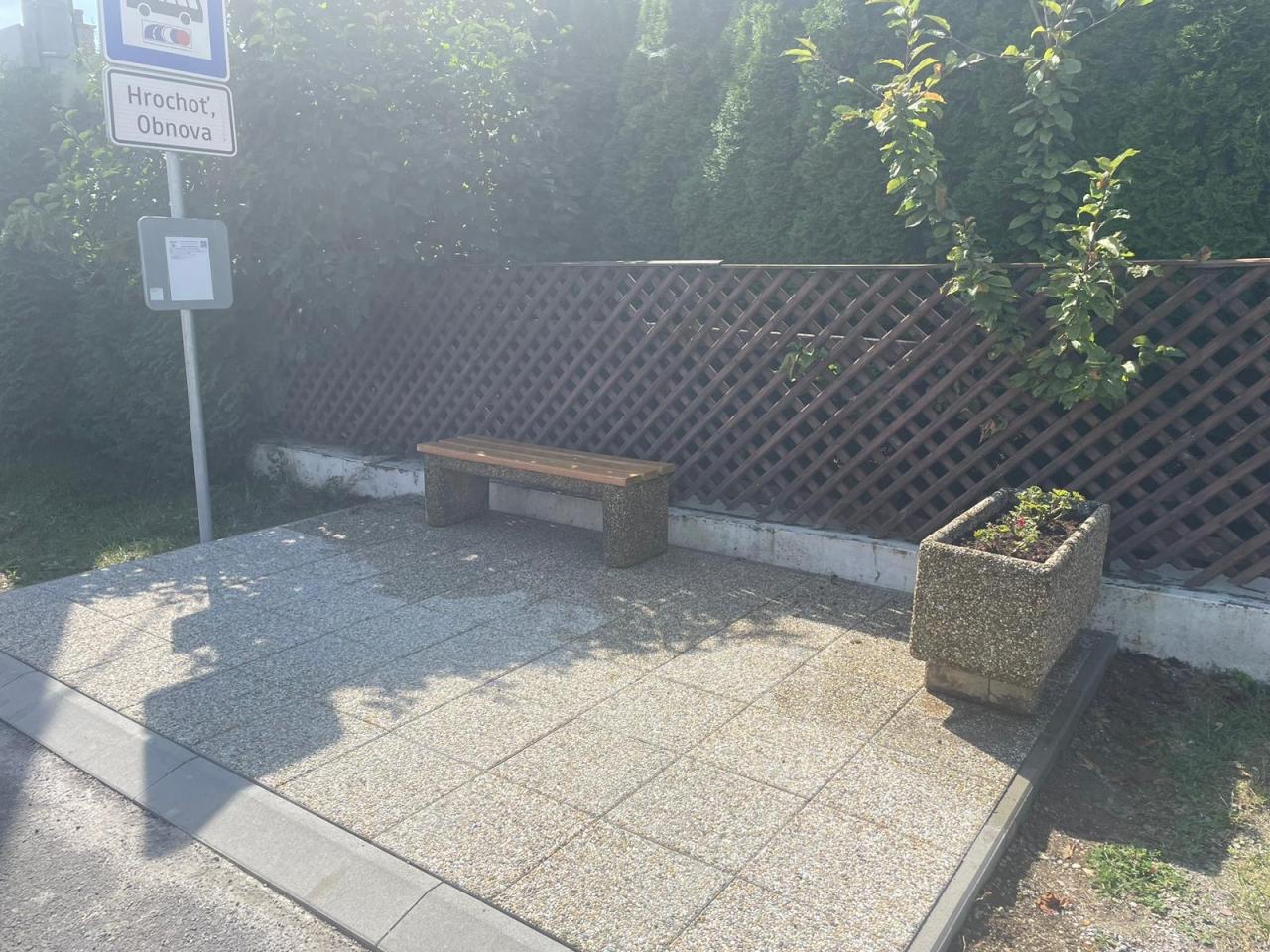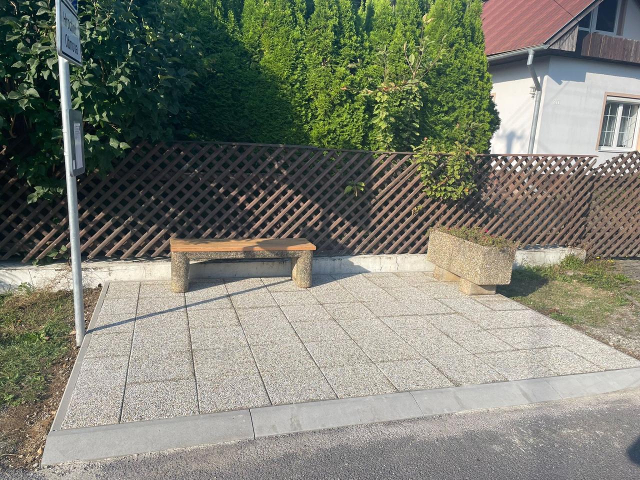 - Vybudovali sme nové stojisko na autobusovej zástavke Obnova v smere do obce a doplnili lavičku a mobiliár.